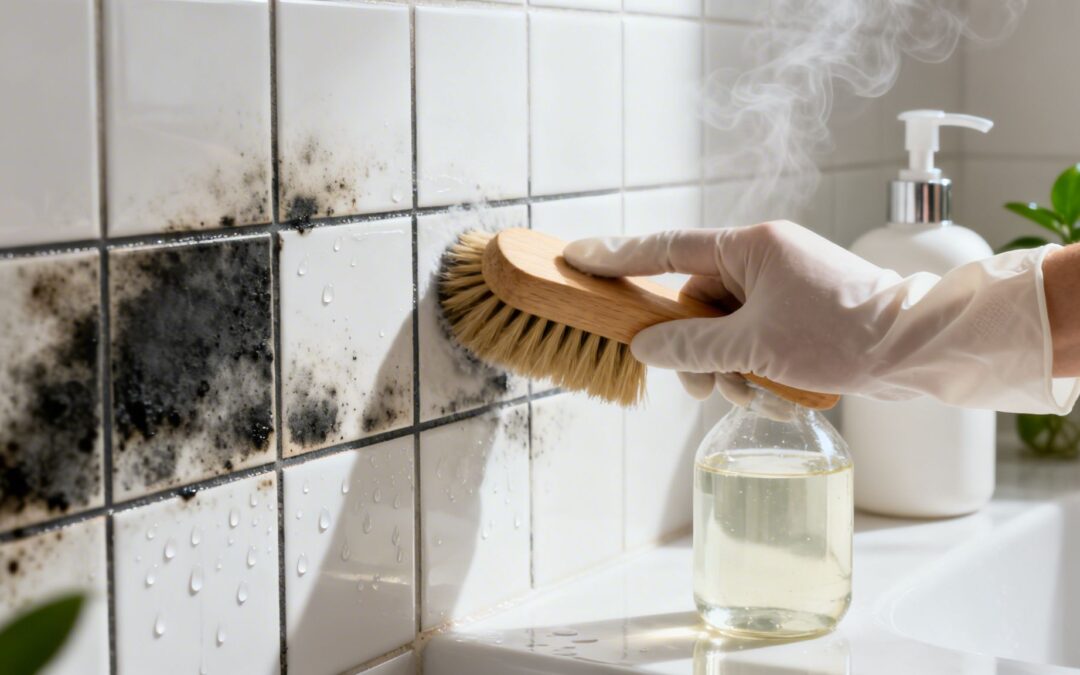 Once the cleaner has had time to do its thing, grab a stiff-bristled brush (an old toothbrush works wonders on tight grout lines) and start scrubbing in a circular motion. You should see the mould starting to lift away. Use firm pressure, but steer clear of wire brushes, which can easily damage your grout and tiles.